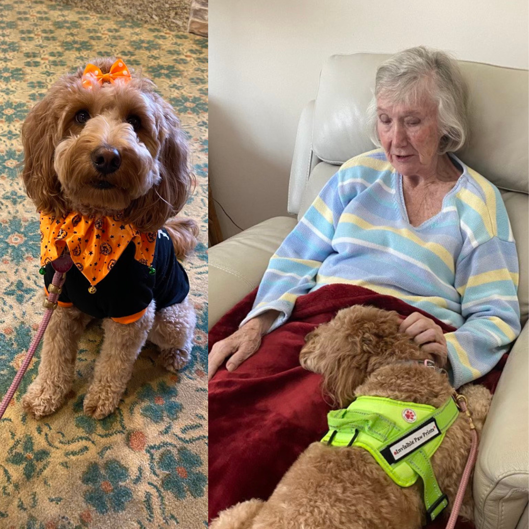 “Hello! I was just recommending Harmony Doodles to someone and that brought me to your website. While I was there, I thought maybe you would like to know how Hadley is doing. We are SO grateful that Hadley came into our life. She is the absolute sweetest girl and we love her SO much. She just turned five and she is living her best life. Not only does she bring us joy daily, but she is a registered therapy dog through Invisible Paw Prints (and has been for four years). That says a lot about her personality! She visits the Ronald McDonald House, listens to stories read to her by children in the Paws to Read program at the library, visits seniors at a local assisted living community and attends events that request therapy dog teams. I am so proud of her and love to see the joy she brings. She is a blessing to so many. Just wanted to say thank you!”